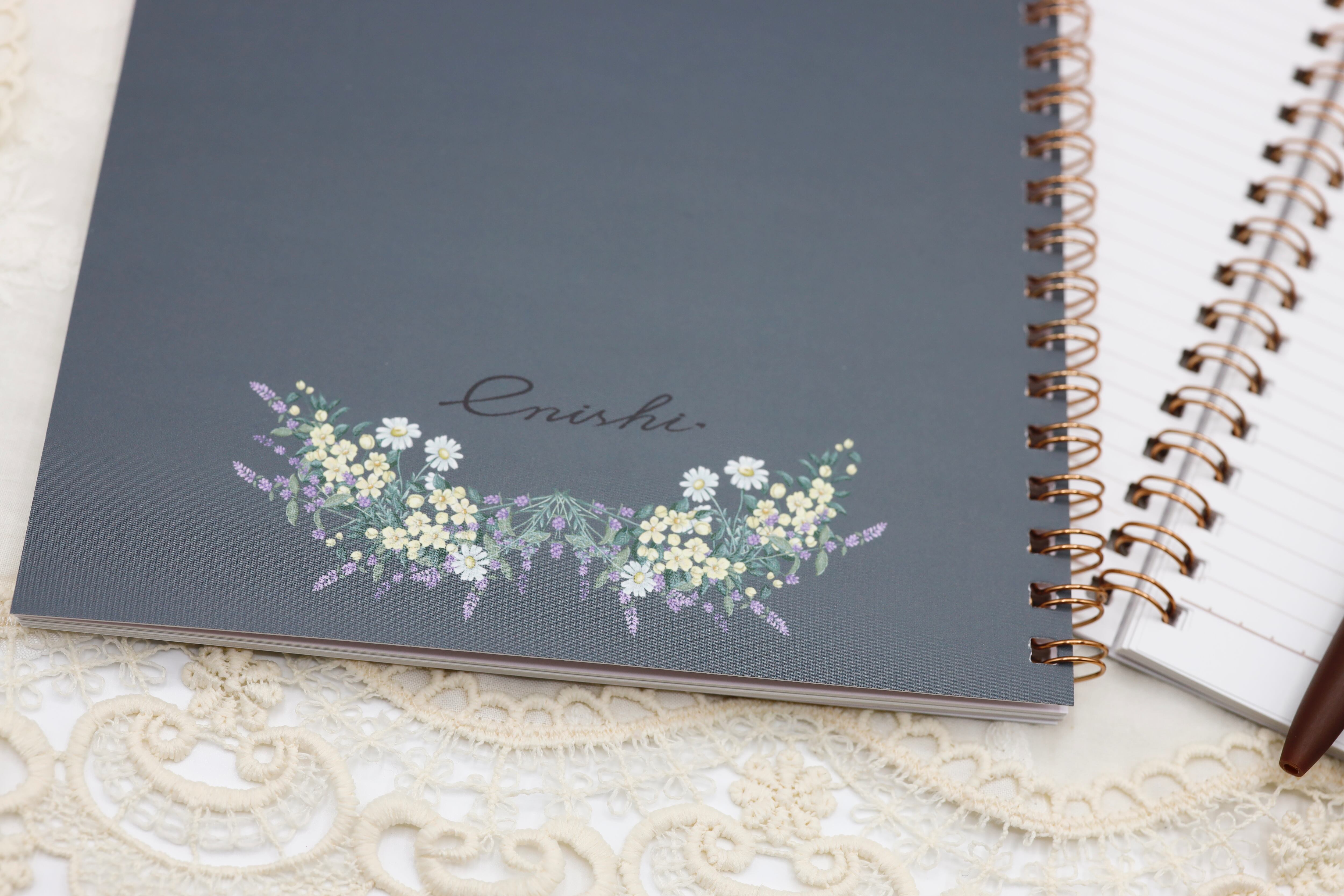 中のノートにはenishi.のロゴと
